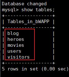위 과정을 반복하면서 데이터베이스명은 bwapp임이 밝혀졌다.
