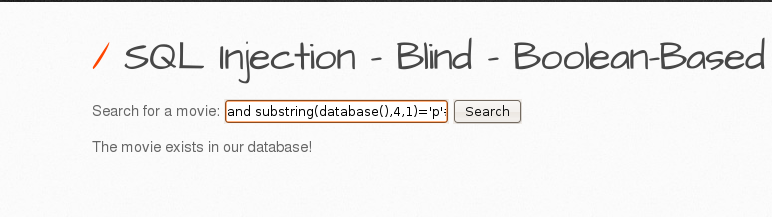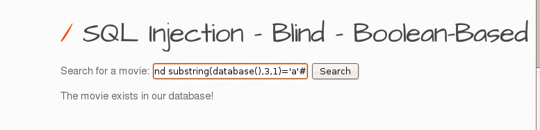 substring(database(), 시작 인덱스, 개수) <- 이 함수는 데이터베이스명에서 시작 인덱스 부터 원하는 길이만큼 문자열을 반환한다.