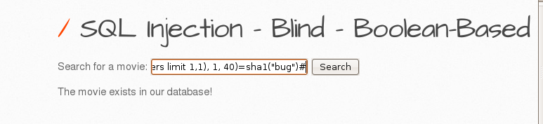 ' or 1=1 and sha1("bug")=(select password from users where login='bee')#