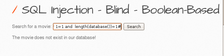 데이터베이스 명을 추측하기 위해 항상 참인 문장과 database 이름의 길이를 출력하는 length함수를 and 연산자로 연결하한다. 숫자를 1부터 늘려서 계속 공격을 시도한다.