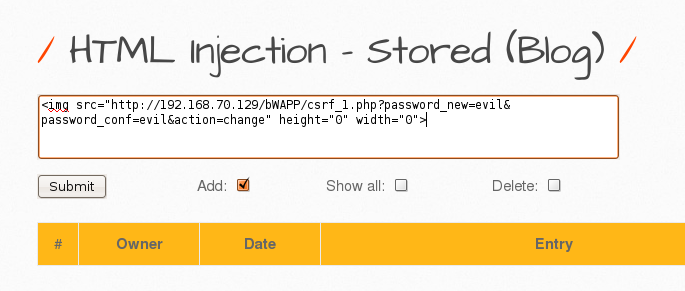 html injection 페이지로 이동 후 화면 속 이미지 태그를 입력