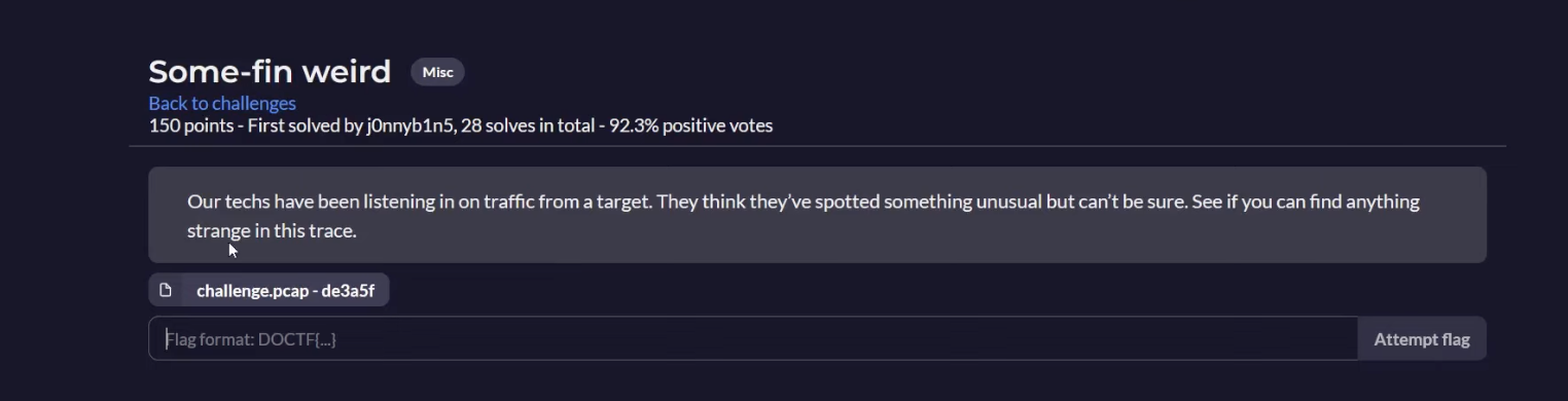 challenge.pcap 파일을 다운로드 받은 후 wireshark 실행시키기